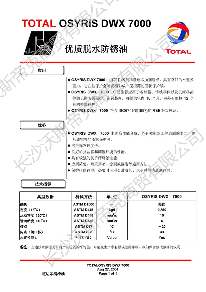 道达尔Osyris DWX7000脱水防锈油  详细说明